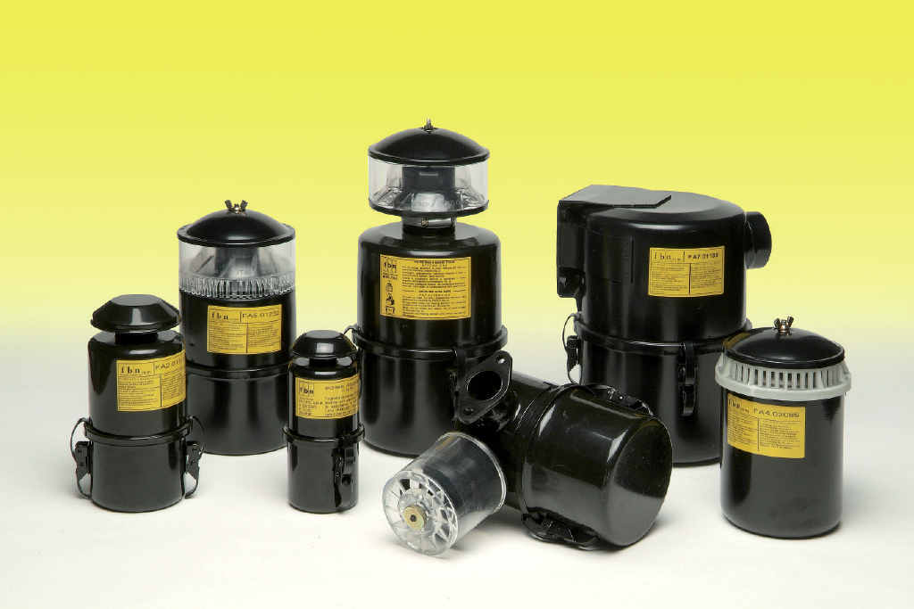 Possono essere forniti con aspirazione a cappellotto o per ambienti molto polverosi, con prefiltro a ciclone. I filtri presentano un ottimo trattamento di verniciatura, indispensabile per affrontare e resistere in ogni tipo di ambiente esterno, ed anche accurate lavorazioni meccaniche.